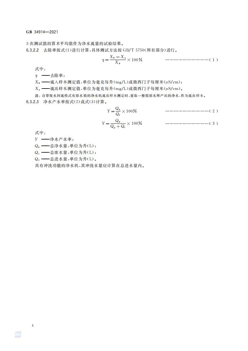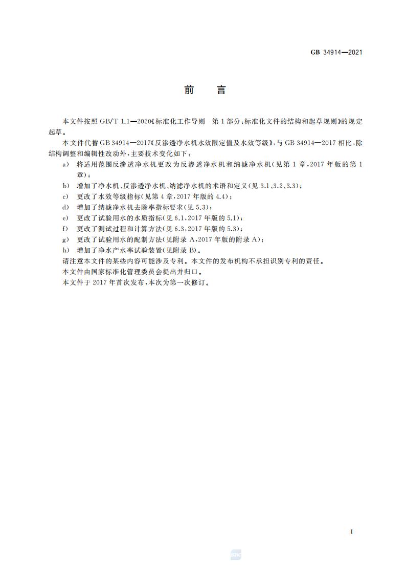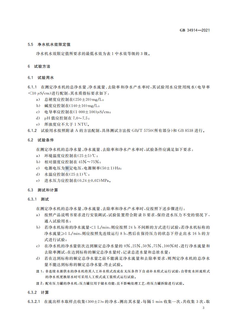 净水机水效限定值及水效等级 GB+34914-2021